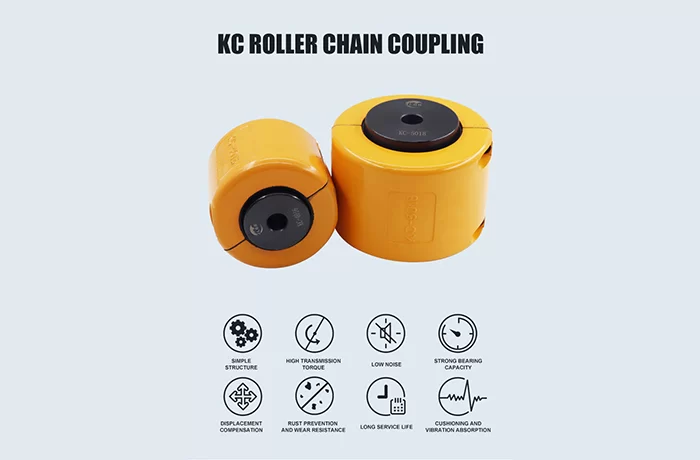Cuplajul cu lanț cu role KC este un fel de cuplare flexibilă fără elemente elastice, care este simplă și compactă ca structură, economică ca cost și are o capacitate bună de compensare.