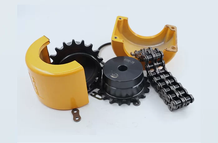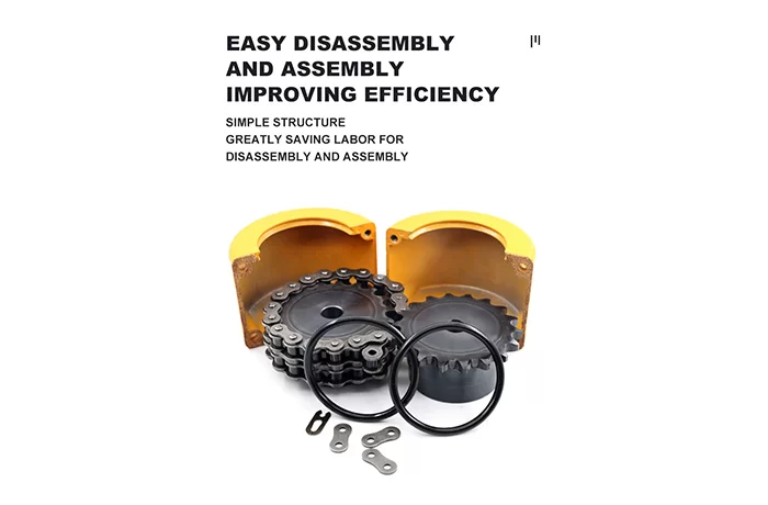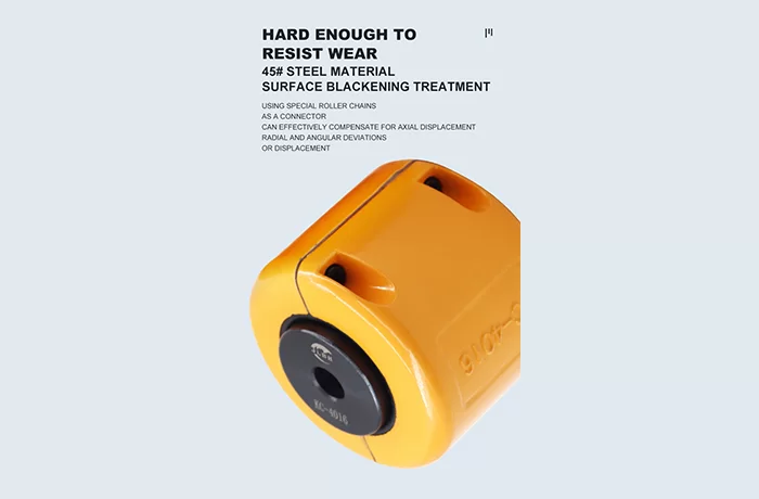 Este alcătuit în principal din două jumătăți de cuplare (butuci de pinion) cu caneluri pentru dinți de pinion, un lanț cu role comun cu două rânduri și un capac exterior (capac lanț) pentru protejarea lanțului și a grăsimii. Cuplul este transmis prin angrenarea lanțului cu canelurile dinților pinionului pe ambele părți. Avantajul său principal constă în capacitatea sa de a compensa eficient deplasările radiale mari, deplasările unghiulare și anumite deplasări axiale între doi arbori. Are cerințe relativ scăzute pentru instalare și aliniere și este convenabil pentru instalare și întreținere. În același timp, are o gamă largă de transmisii de cuplu și este potrivit pentru aplicații de transmisie de putere medie și mare, de viteză medie și mică (cum ar fi pompe, ventilatoare, compresoare, transportoare și alte mașini generale). Trebuie remarcat faptul că are nevoie de lubrifiere regulată pentru a menține durata de viață a lanțului și nu are capacitatea de a tampona și de a absorbi vibrațiile.